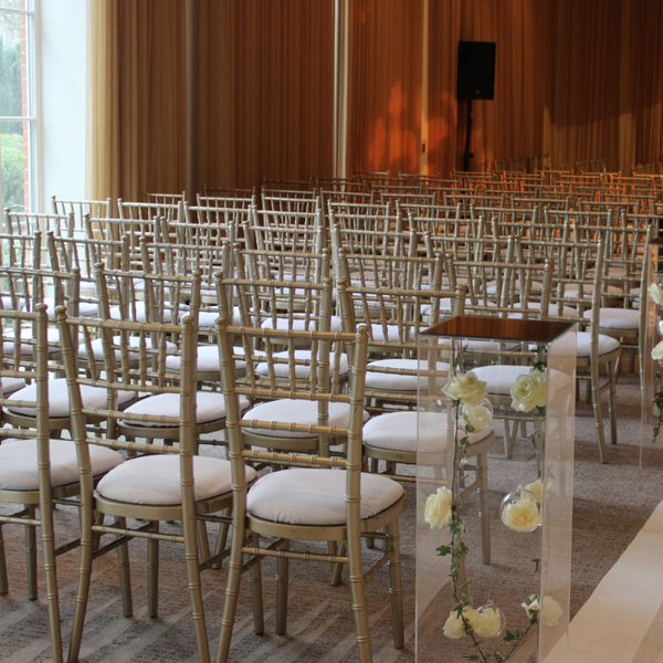 Elevate your event with our Gold chiavari chairs, known for their timeless elegance and versatility. Perfect for weddings, parties, and any special occasion.